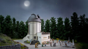 NOCH 66837 – micro-motion Sternwarte Laser-Cut Bausatz Sternwarte Planeten Projektor micro-motion Antrieb für Kuppel und Teleskop 6 exklusive, farbig gedruckte Figuren mit 2 Katzen Numme…