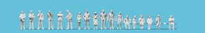 Preiser 80992 – Stehende Frauen und Männer, Arbeiter. 18 unbemalte Miniaturfiguren. Bausatz
