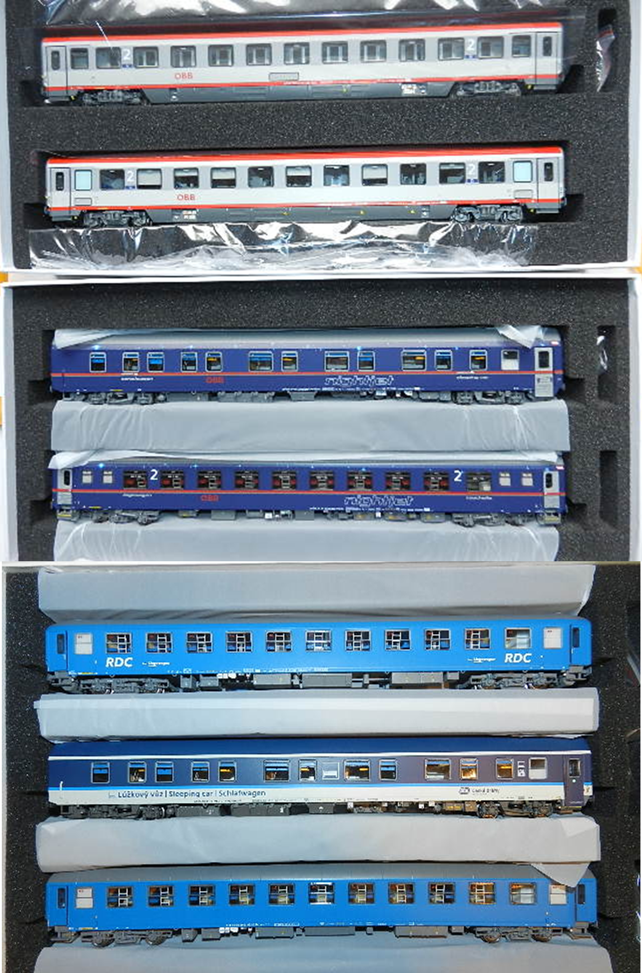 LS Models LS97033 LS98030 – 7er Set Nachtzugwagen ÖBB NJ, Ep.VI, NJ408, Set I + II – Lemke-Sonderserie