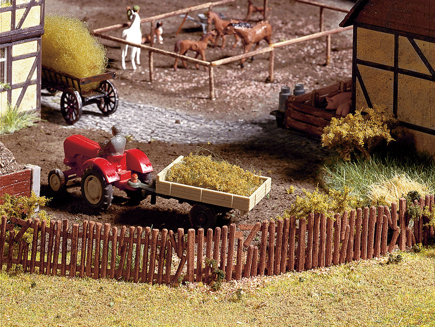 Je nach Zauntyp sind gerade Stücke, Gartentore, Einfahrten, zerfallene Zaunpartien und vieles mehr enthalten. Mit dem „Verwahrlosten Zaun“ unterstreichen Sie kleine und besondere Details in Ihrer Modelllandschaft.