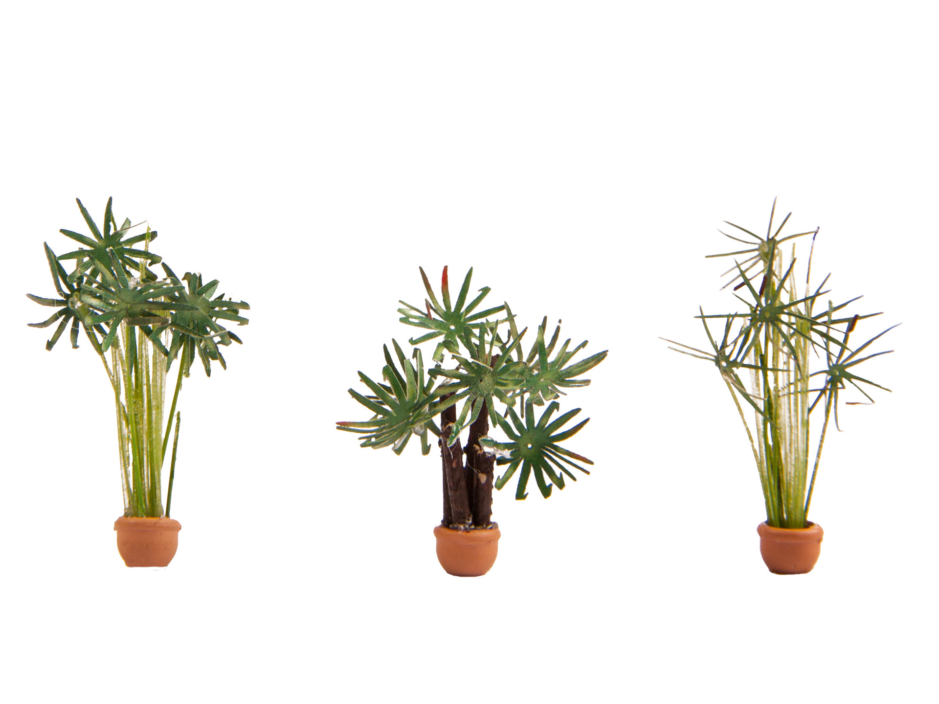 Mit den Zierpflanzen in den braunen Blumentöpfen können Gärten, Parks, Terrassen und vieles mehr realistisch ausgestaltet werden. Die „Palmen“ bringen besondere Szenen wie Straßen-Cafés optimal zur Geltung und sorgen für einen echten Hingucker.