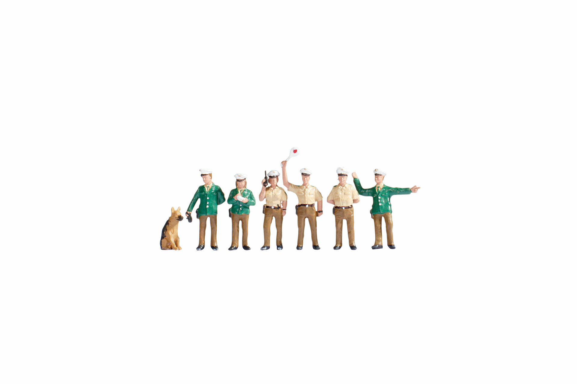 Das Set enthält sechs Modellfiguren in der typisch moosgrünen/beige-farbenen Uniform. Diese Uniform war in Deutschland von den 1970er Jahren an üblich und wurde zwischen 2003 und 2018 sukzessive durch die heutige blaue Uniform abgelöst. Die Modellfiguren nehmen verschiedene Haltungen ein. Ein Polizist hält Fahrzeuge mit einer Kelle an, ein weiterer regelt den Verkehr, ein Kollege führt einen Schäferhund, sein Kollege funkt, ein Polizist steht breitbeinig da, während seine Kollegin ein Strafmandat ausstellt.