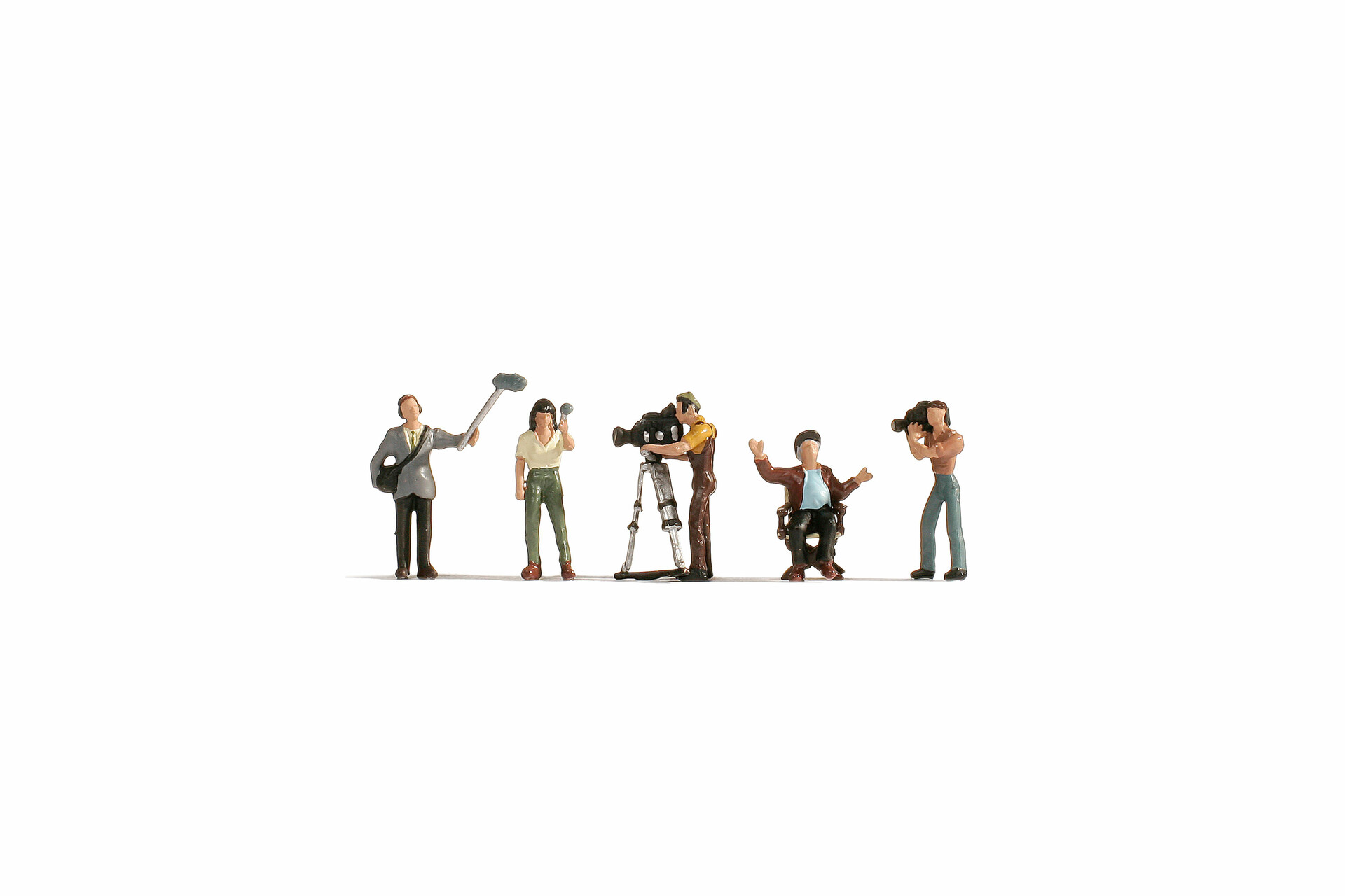 Das Set besteht aus mehreren handbemalten Figuren in typischer Arbeitshaltung, ausgestattet mit realistisch nachgebildeter Technik wie Schulterkameras, Mikrofonen und Stativen. Jede Figur ist ein kleines Kunstwerk, das mit viel Liebe zum Detail gefertigt wurde und durch seine Ausdrucksstärke überzeugt.