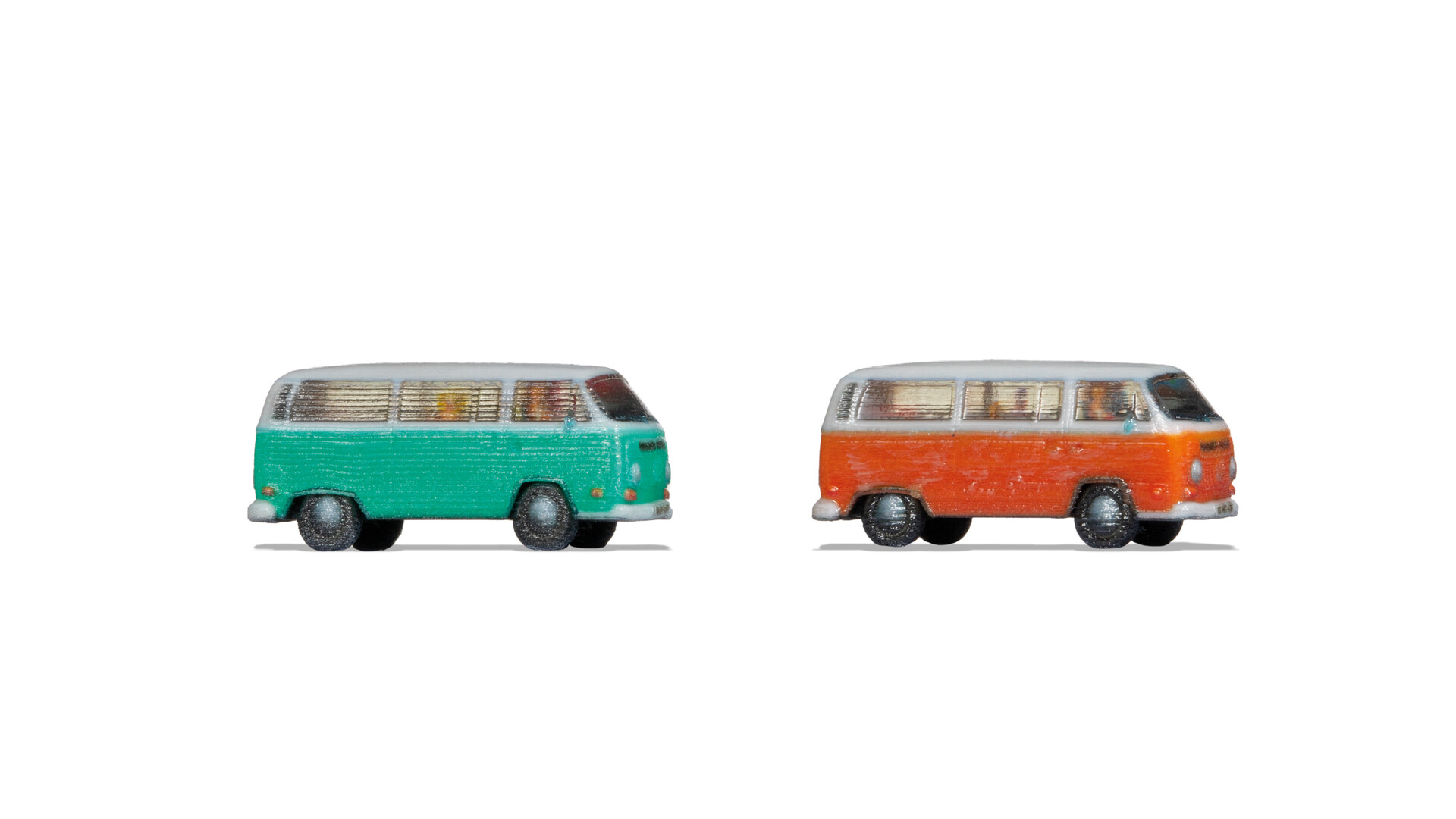 Dank des innovativen, vollfarbigen 3D-Drucks kommt jetzt Farbe auf die Spur Z Straßen! Die neuen 3D-Master-Fahrzugsets beinhalten jeweils zwei Fahrzeuge in zwei unterschiedlichen Farben.