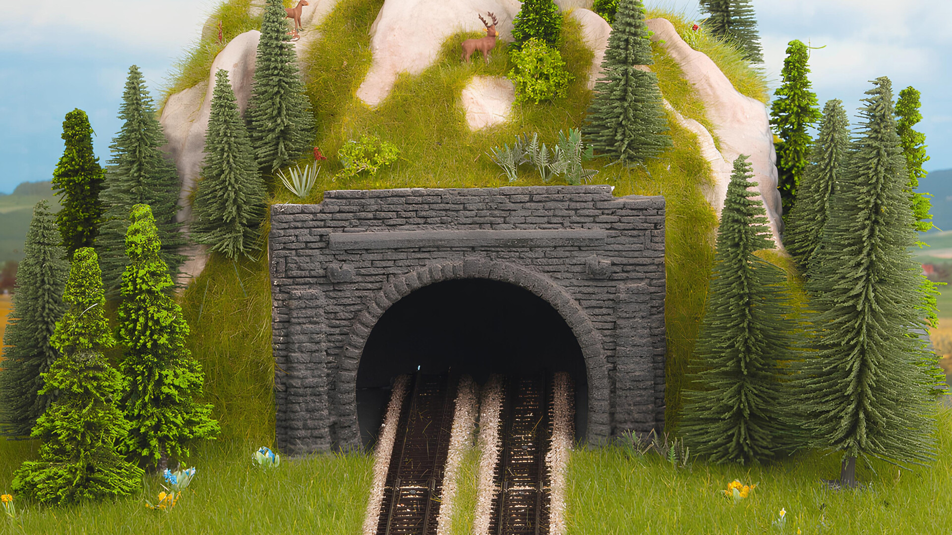 Vorsatz-Portale dienen dazu, Tunneleinfahrten größerer Spurweiten auf das Maß einer kleineren Spurweite zu reduzieren. Dies ist beispielsweise bei der Verwendung eines NOCH H0-Fertiggeländes in Spur TT notwendig. Alle Vorsatz-Portale sind für Oberleitungen geeignet.