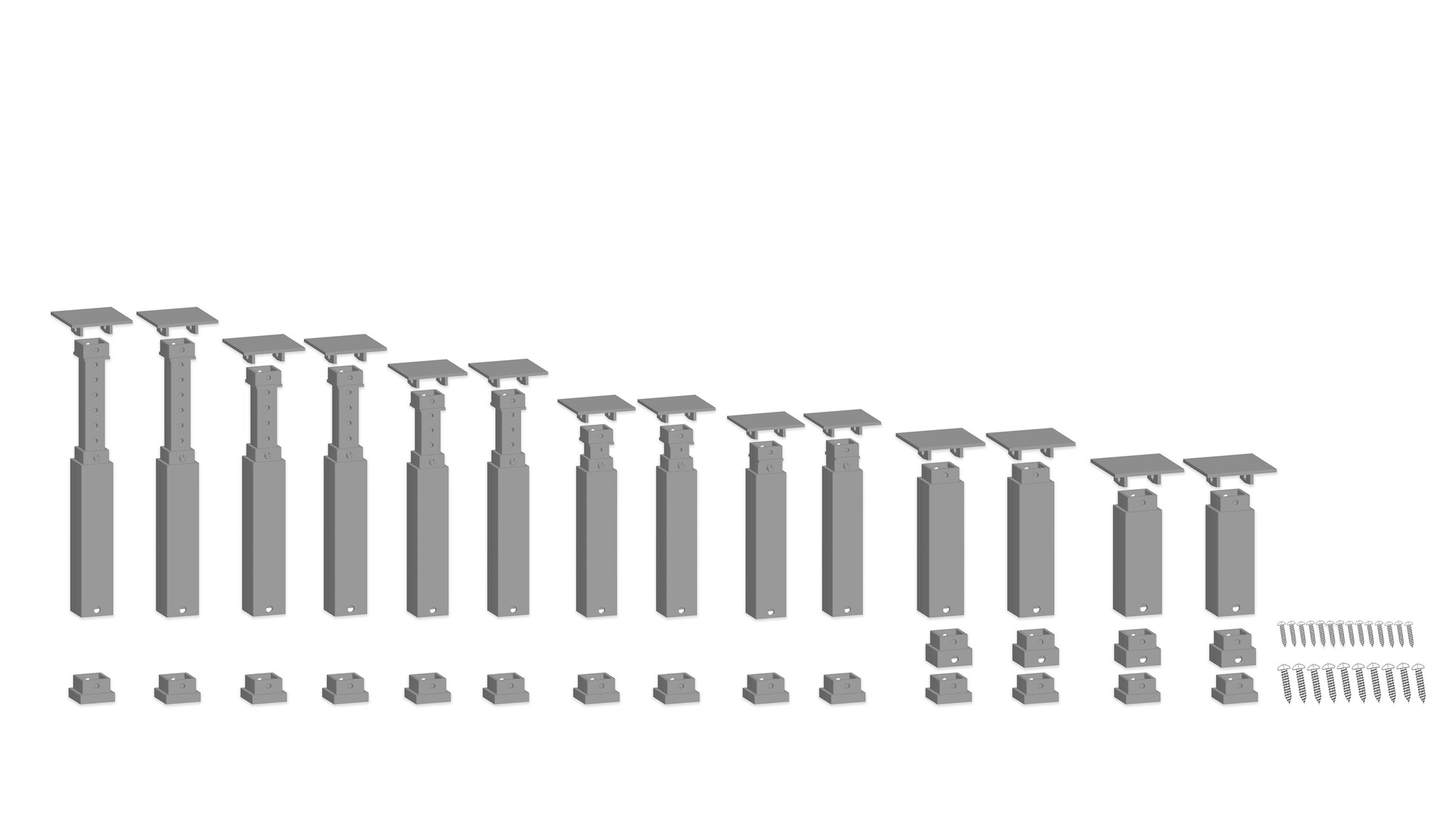 Dieses Set enthält 14 Pfeilerelemente „Steigung“ mit 63,25 – 150,25 mm Höhe.