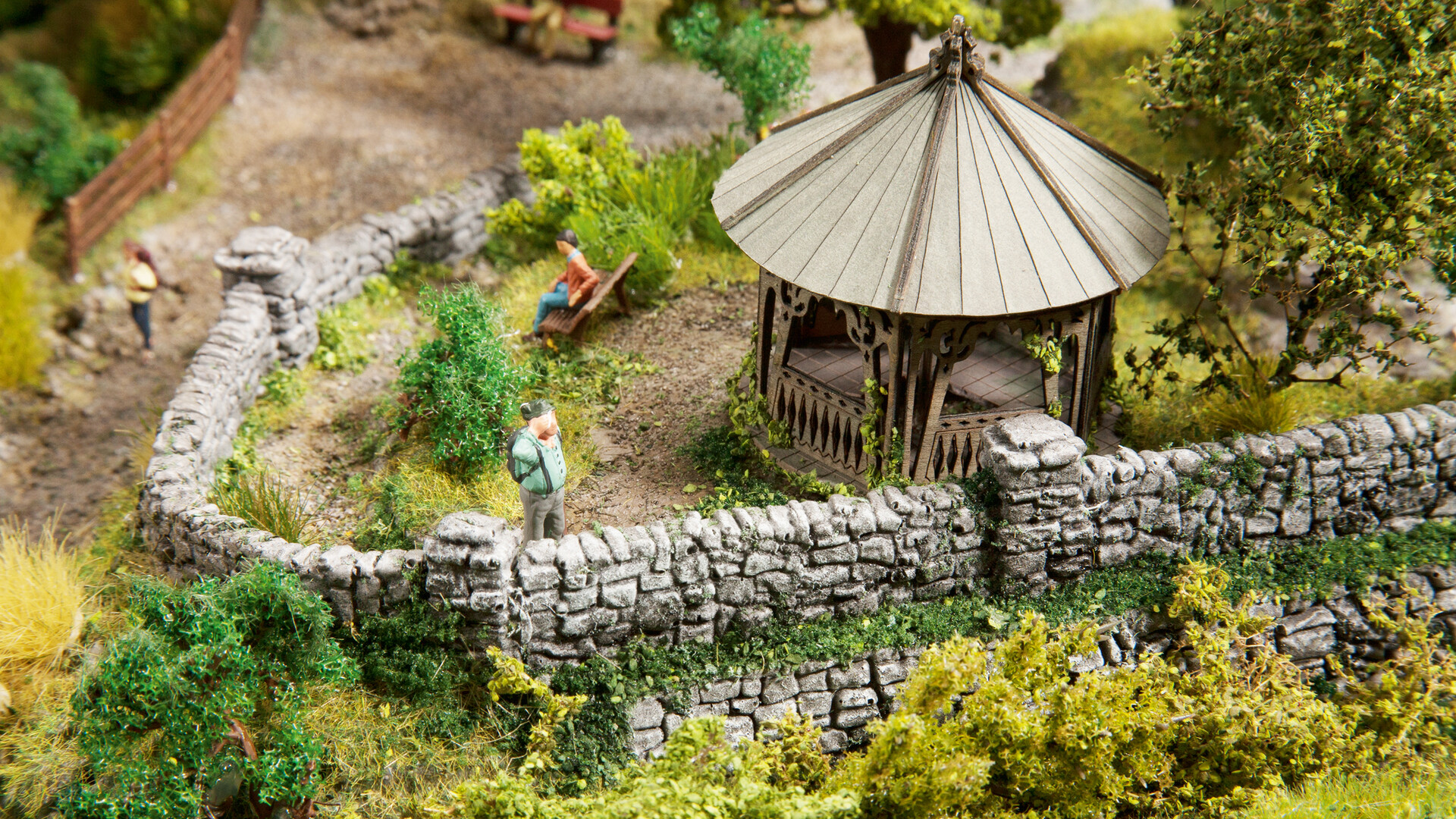 Die Mauern werden aus hochwertigem NOCH Struktur-Hartschaum hergestellt und wirken dadurch überaus realistisch. Ein weiterer Vorteil von NOCH Hartschaum ist die einfache Weiterverarbeitung. Die Mauern werden mit einem Cuttermesser von der Trägerplatte getrennt und können direkt in das Modellgelände eingeklebt werden. Die Mauerreste können für Mauerabschlüsse, Wege, Wände, Stützmauern und weitere Mauer Details verwendet werden.Neben Stützpfeilern sind ist auch ein kleiner Steinbrunnen aus Granit enthalten.