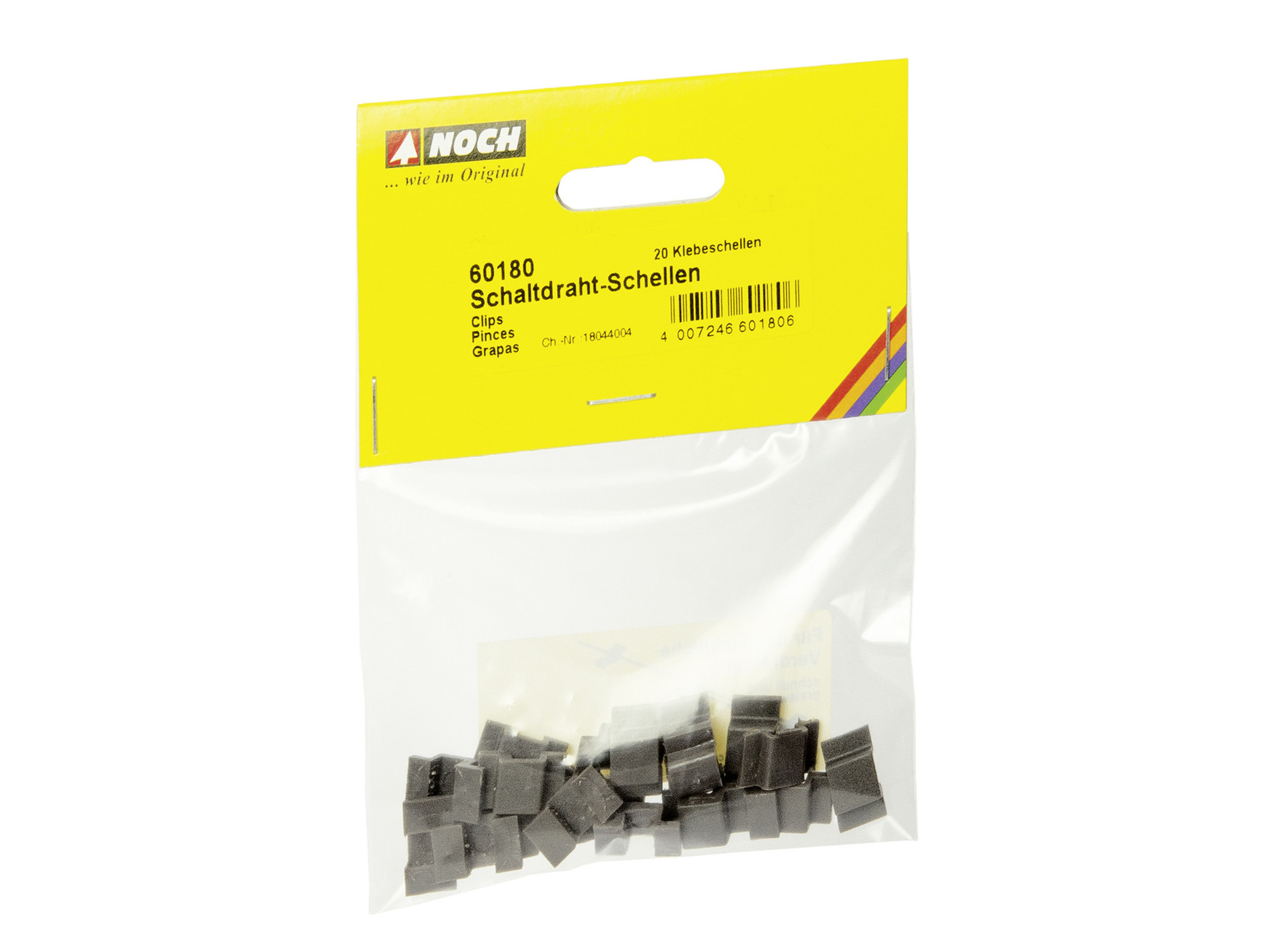 NOCH 60180 – Schaltdraht-Schellen 20 Stück, einfach unter der Anlage aufkleben oder aufnageln und Kabel durchziehen