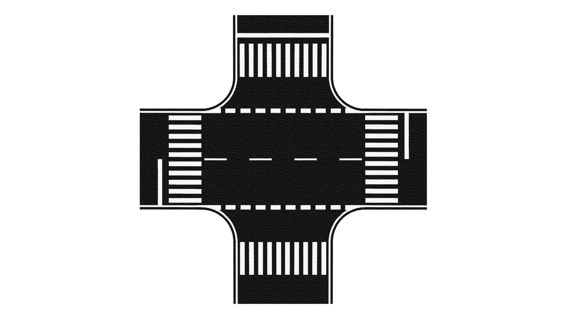 Die Fahrbahnanschlüsse der H0-Kreuzung sind 8 cm breit und passen damit exakt an die Straßen-Folie „Bundesstraße H0“. Da die Kreuzung in zwei Teilen geliefert wird, kann der Fahrbahnanschluss einfach durch Zuschneiden auf die H0-Landstraßenbreite von 6,6 cm verkleinert werden.