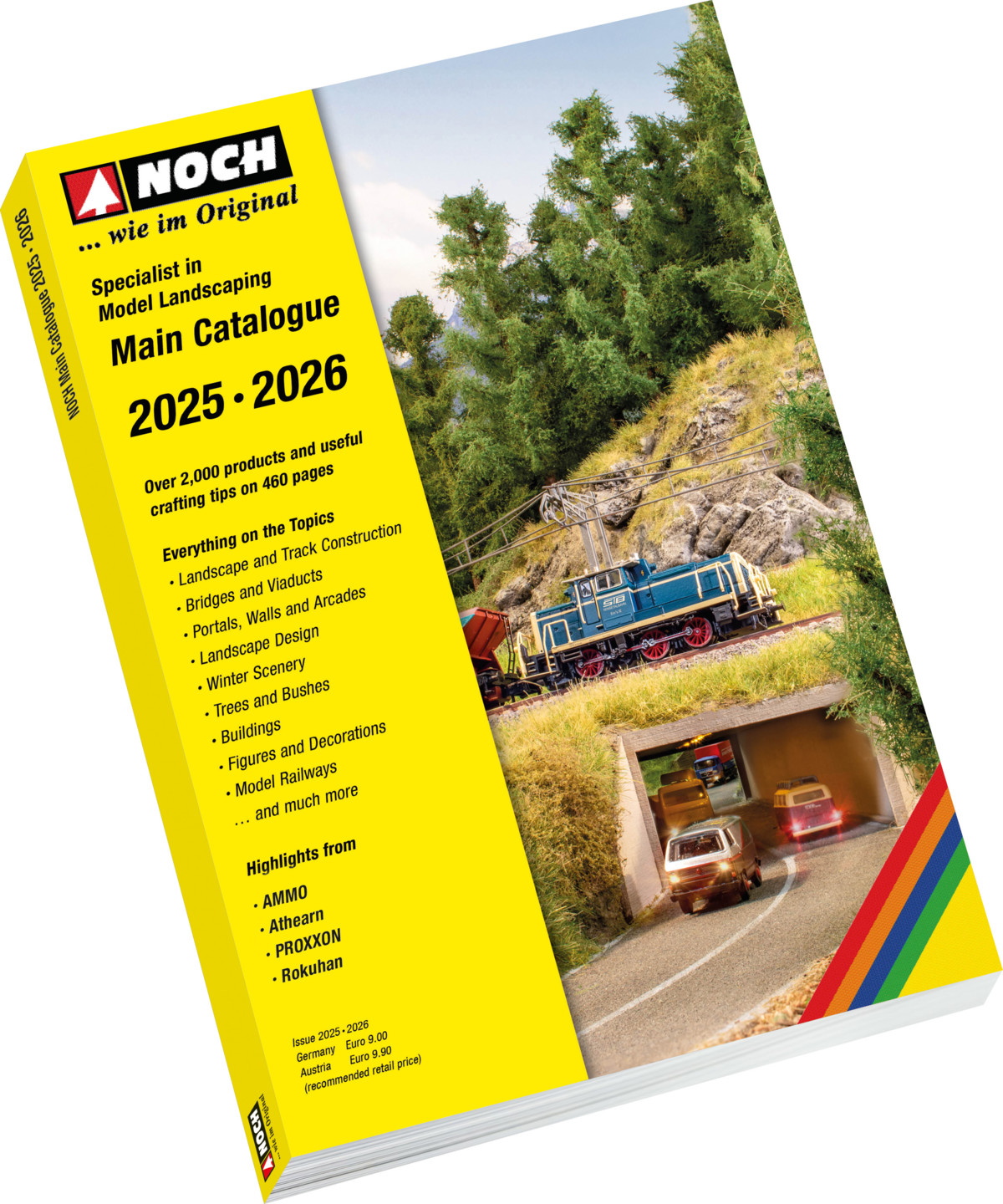 Mit 452 Seiten voller Inspiration ist dieser Katalog ein Muss für jeden Modellbahn-Fan. Neben NOCH Artikeln erwartet Sie eine Auswahl der Produkte von AMMO, Athearn, PROXXON und Rokuhan. Detaillierte Fotos und Anwendungsbeispiele inspirieren zu neuen Projekten. Der Katalog führt durch die Welt der Modellbahn – von Landschaft über Gebäude bis hin zu Farben und Werkzeugen.