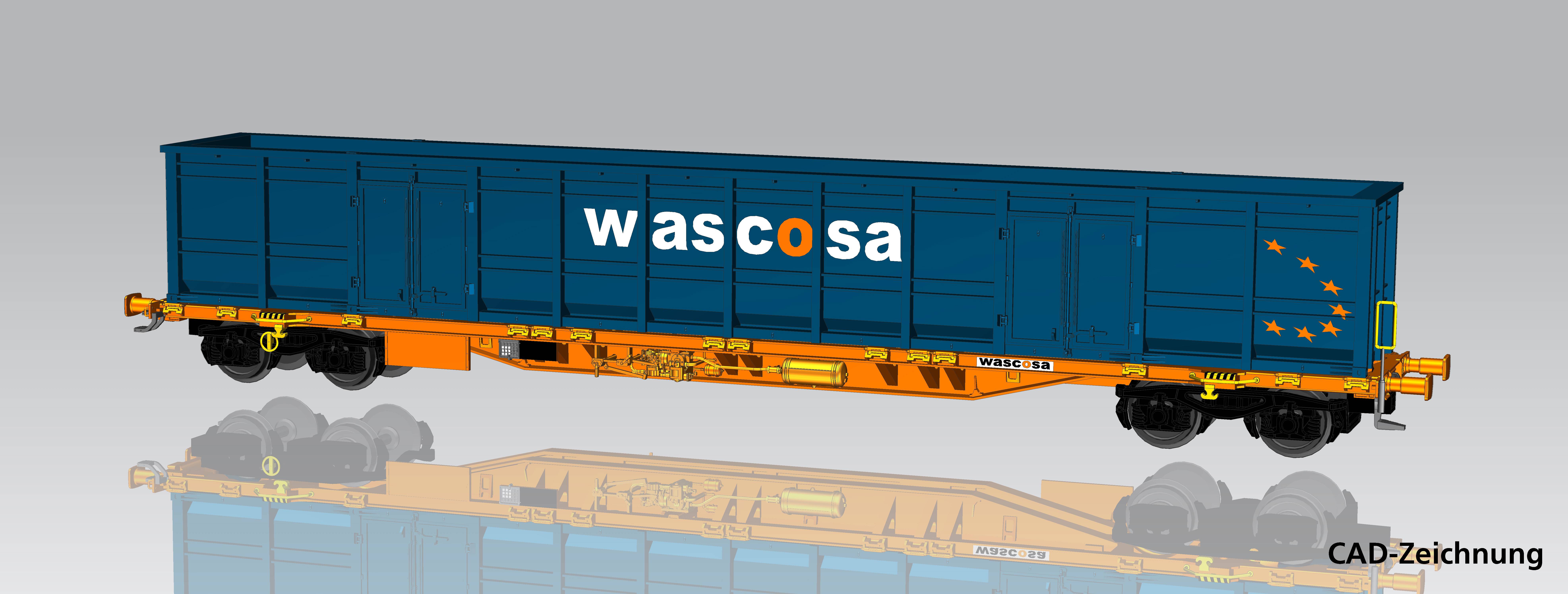 Neuheit 2026: Formvariante des Containertragwagens Sgnns mit E-Aufbau der CH-Wasco in der Epoche VI. Mit extra angesetzten Handläufen, Seilanker, Handgriffen und feinen Rangiertritten. Die Bremsarmaturen und Luftkessel sind ebenfalls separate Teile. Das Modell überzeugt durch hervorragende Rolleigenschaften.