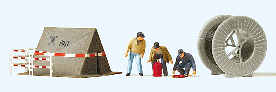 Preiser 10374 – H0 Fernmeldearbeiter. Bauzelt. Zubehör