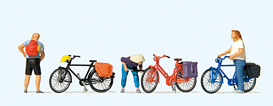 Preiser 10659 – H0 Radfahrer stehend, Reifen aufpumpend und bei „kurzer Pause“