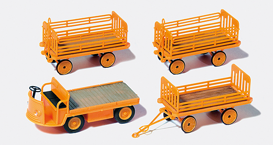 Preiser 17120 – H0 Elektrokarre mit 3 Anhängern. Deutsche Bundesbahn. Epoche IV. Bausatz