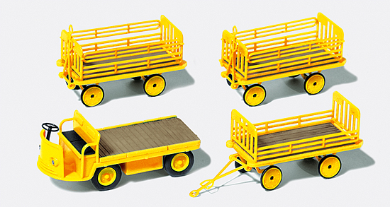 Preiser 17121 – H0 Elektrokarre mit 3 Anh.DP.Ep.III,Bausatz