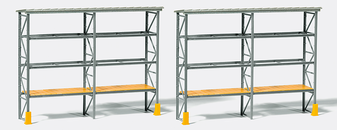 Preiser 17125 – H0 Palettenregal für 48 Europaletten. Mit Überdachung. Bausatz.