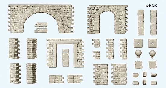 Preiser 18217 – H0 Bruchsteinmauern mit Toröffnungen und Rundbogen, Eckpfosten. Zubehör