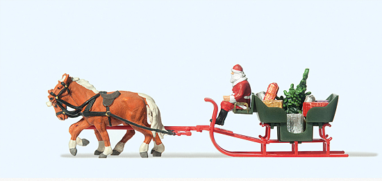 Preiser 30448 – H0 Schlitten, Weihnachtsmann, Pakete, Pferdezug