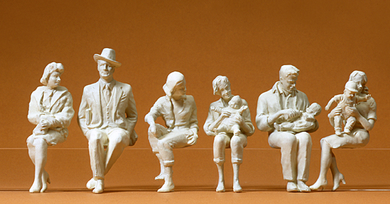 Preiser 45179 – G Sitzende Personen. 6 unbemalte Figuren. Bausatz