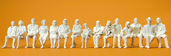 Preiser 63001 – 1:32 Sitzende Reisende. 15 unbemalte Miniaturfiguren. Bausatz