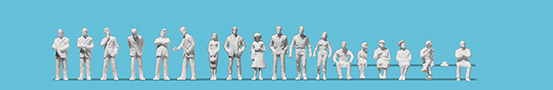 Preiser 74094 – Passanten, Sitzende, Geschäftsleute. 18 unbemalte Miniaturfiguren. Bausatz