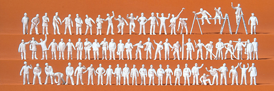 Preiser 79009 – N Auf der Arbeit. 70 unbemalte Miniatur- figuren. Zubehör. Bausatz