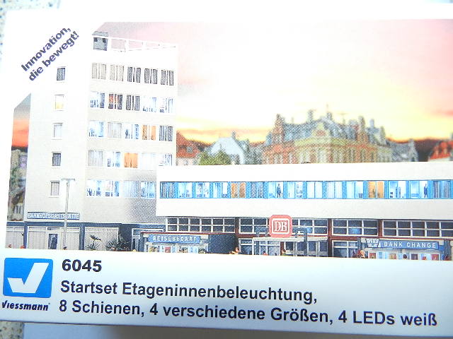 Viessmann 6045 – Startset Etageninnenbeleuchtung, 8 Schienen, 4 verschiedene Größen, 4 LEDs weiß