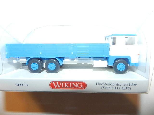 Wiking 0433 10 Hochbordpritschen-Lkw (Scania 111 LBT) – weiß/himmelblau 043310